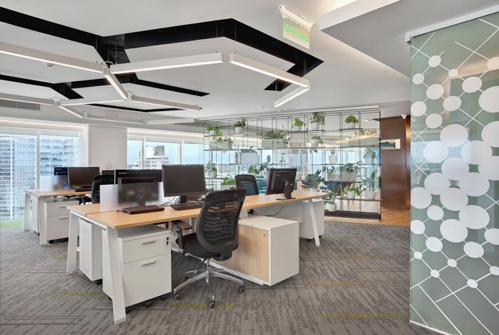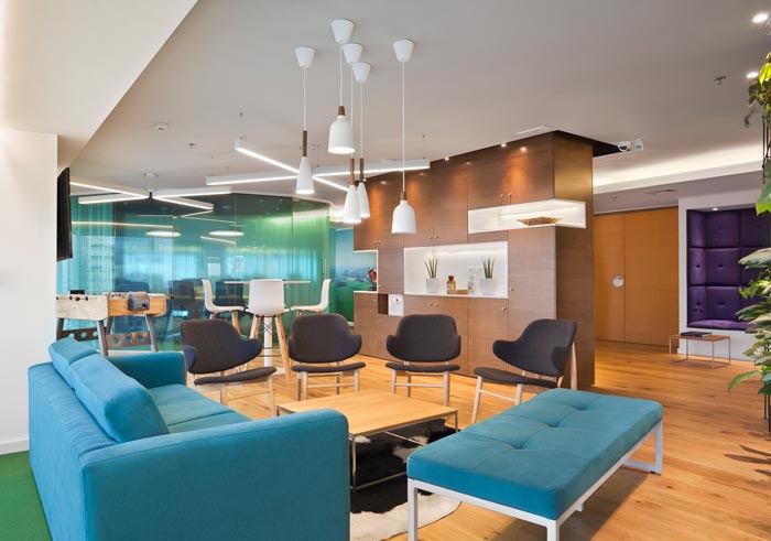 办公区域的设计:设计师在设计的时候,采用不规则的办公布局,在设计师看来这样的设计可以各取所长、各补所短,在开放空间布局的同时,为每一个员工打造一个属于自己的私人空间,不规则所打造的办公空间,让空间充满了活力。