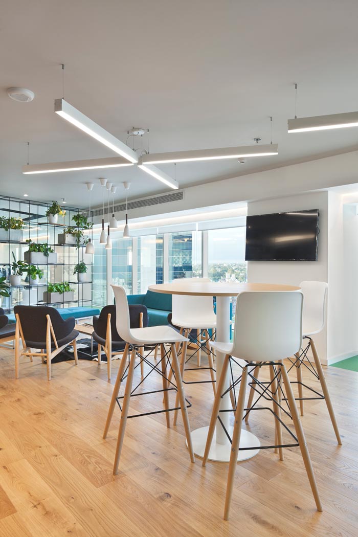 休息区域的设计:设计师在设计的时候,将阳台区域进行了很好的开发,在此处有休息区域、有吧台、有很好的外部风景,设计师希望为企业打造一个多元化的空间,让员工在此处可以尽情的放飞自己,尽情的休息与交流,让他们脱离哪些无形的束缚。
