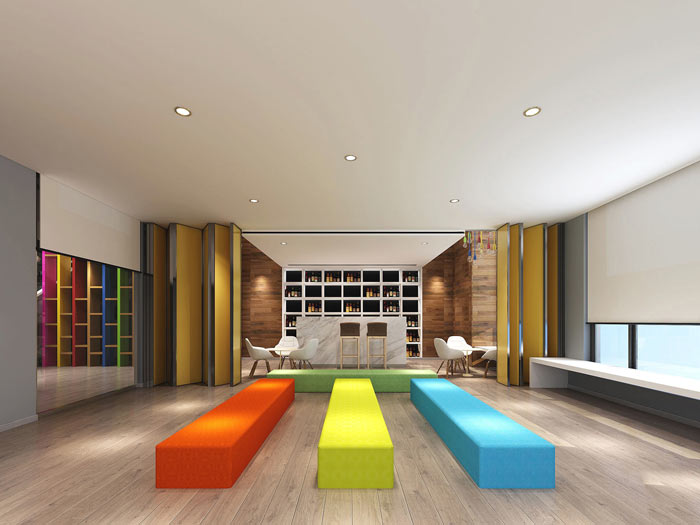 休息区域的设计,设计师在设计的时候,将茶水间、吧台、洽谈区域进行四位融合,在设计师看来有很多空间的可以进行有效的融合,这样的融合往往是利大于弊的,融合在此处空间运用的最多,也是设计师对于设计师提升的一大见证。