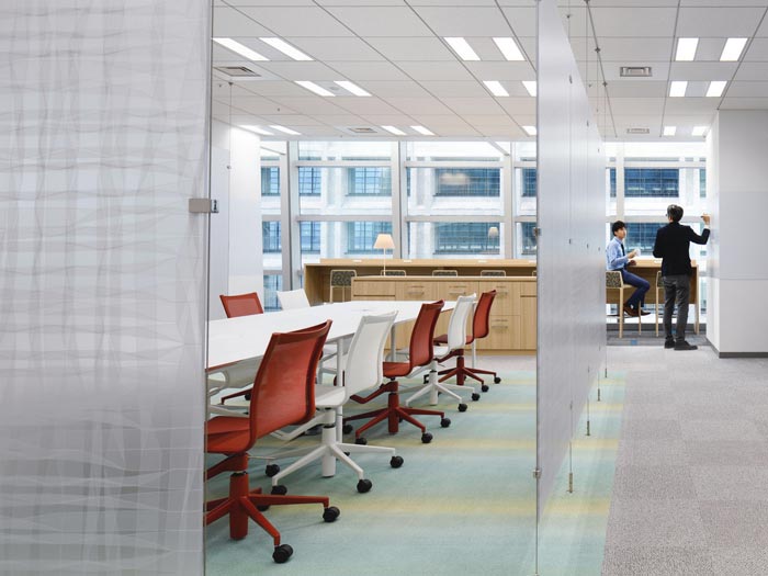 会议室的设计:会议室被设计师设计成一个半开放的空间,设计师希望可以进一步的优化会议空间,在设计师看来封闭的会议室,在一定程度上会压制人思想的开展,故此设计师在设计的时候,故意留出了一定的距离,目的就是希望我们的思想可以突破界限,以此迎接更加美好的明天。