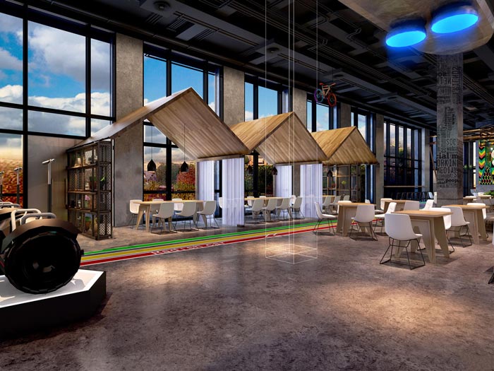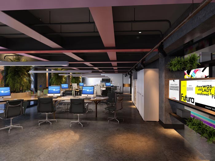 办公区域的设计,设计师在设计的时候,对空间进行了工业风的转化,设计师认为呆板的空间会使人丧失思考的能力与激情,设计师希望这样的空间可以调动员工的心态,让大家在愉悦的工作环境之中完成自身与企业的双重成长。