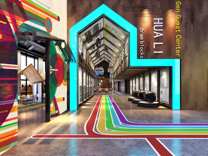 动线的设计,设计师在设计的时候,按照建筑本身的特点,将其一分为二,其一为动线本身、其二为展示区域,设计师希望客户可以在走动中对企业的产品加以了解,让客户可以清晰的感受到企业的实力,为下一步的合作提供契机。