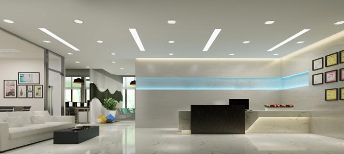 设计师在教育行业办公室前台的设计过程中,首先需要了解企培训机构与教育单位的基本定位与核心理念,其次就是空间本身的特点,两两相合,方能设计出符合企业风格的空间设计。